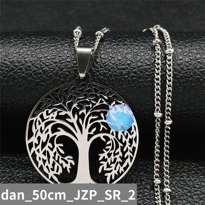 2024 ボヘミアン 太陽 木 ツリー 木の葉 リーフ 植物 プラント ライフ オパール ステンレス スチール ネックレス レディース シルバー カラー チャーム ジュエリー N32S