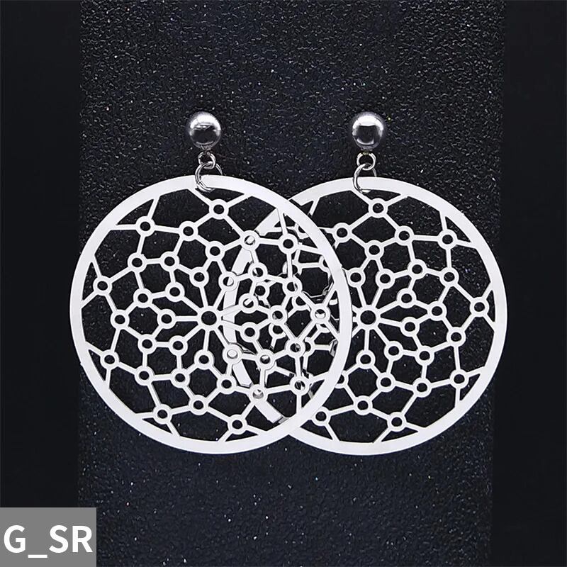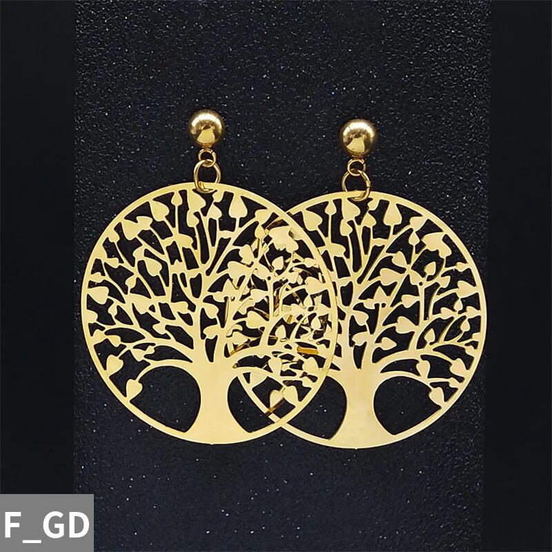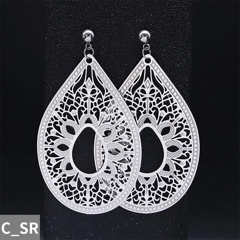 ファッション ボヘミア ステンレス スチール 大 ロング 花 フラワー ピアス レディース ゴールド カラー スタッド BOHO ジュエリー ペンダント E
