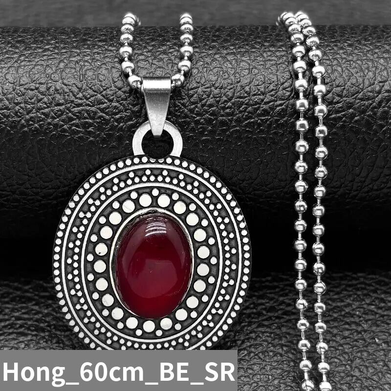 ボヘミア 赤 レッド ナチュラル ストーン ステンレス スチール オバール ネックレス チェーン レディース ゴールド カラー 花 フラワー ジュエリー N3606S