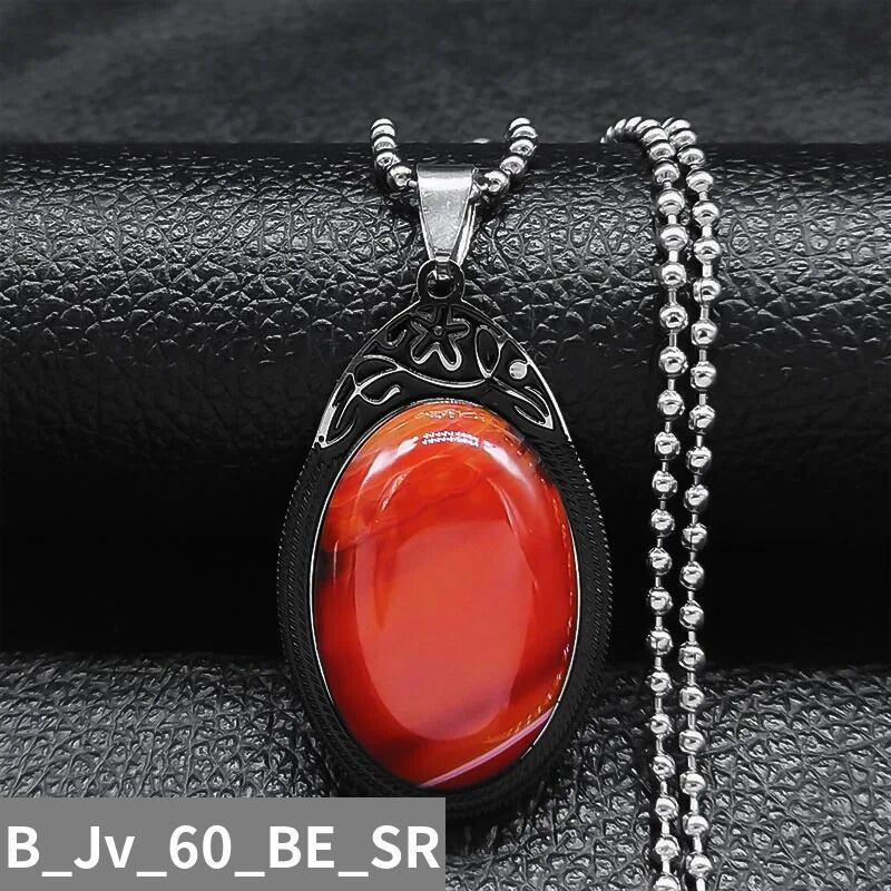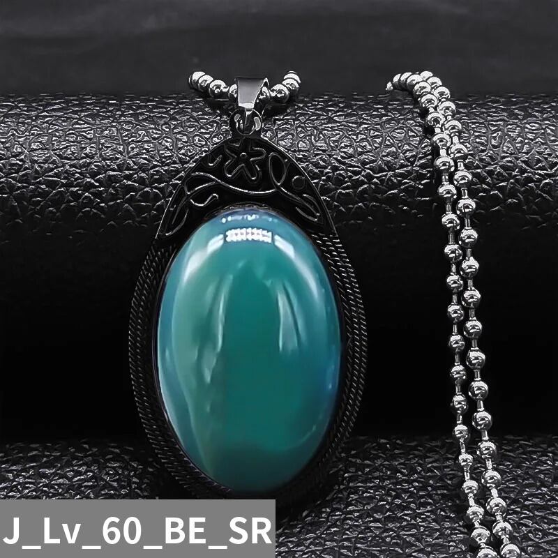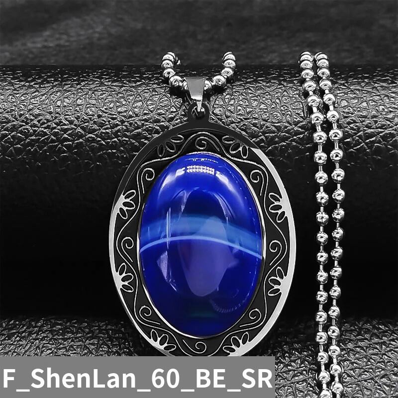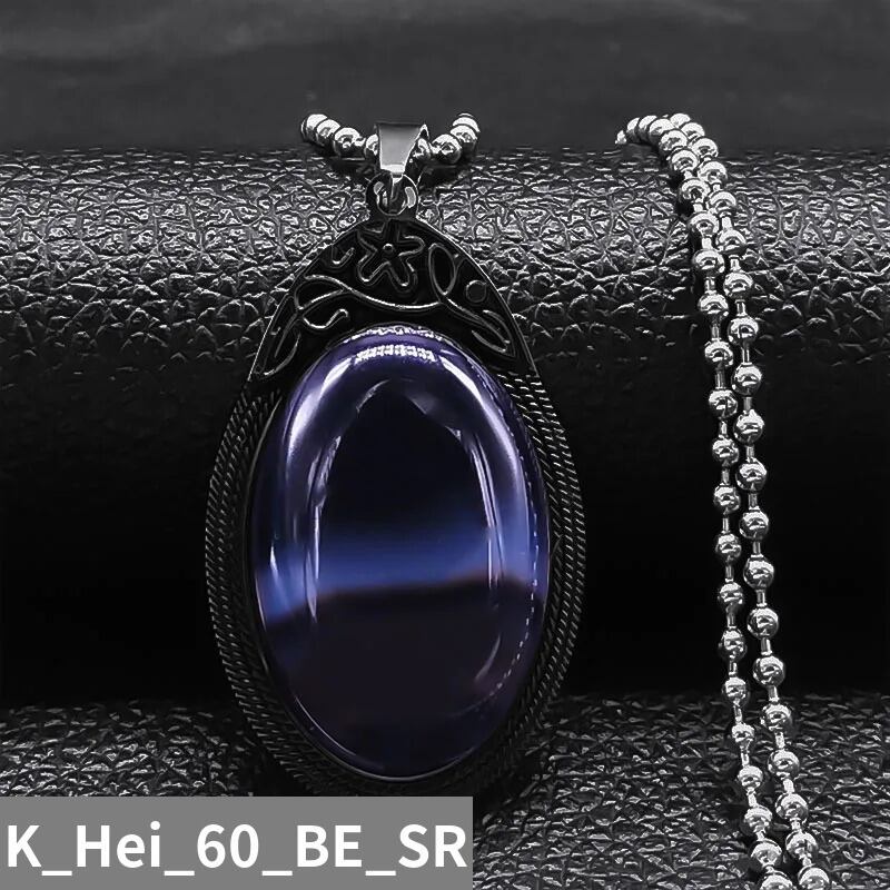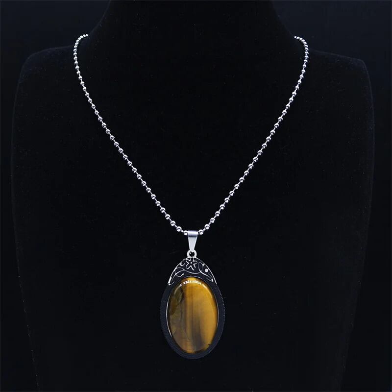 2024 最新 虎 タイガー 動物 アニマル 目 アイズ ナチュラル ストーン ステンレス スチール ネックレス レディース シルバー カラー BOHO オバール ペンダント ジュエリー N2845S