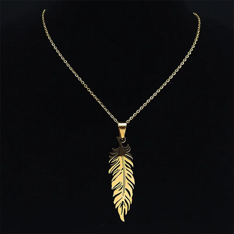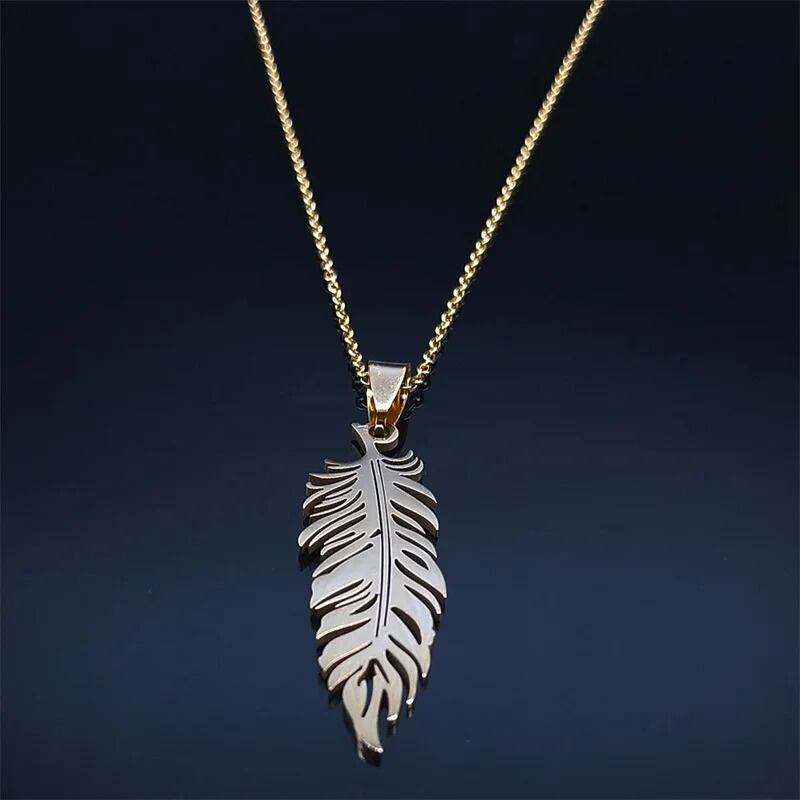 2024 ボヘミアン フェザー 羽根 夏 サマー シンプル ペンダント ネックレス エスニック レディース ステンレス スチール ゴールド カラー BOHO ジュエリー ギフト N3393S