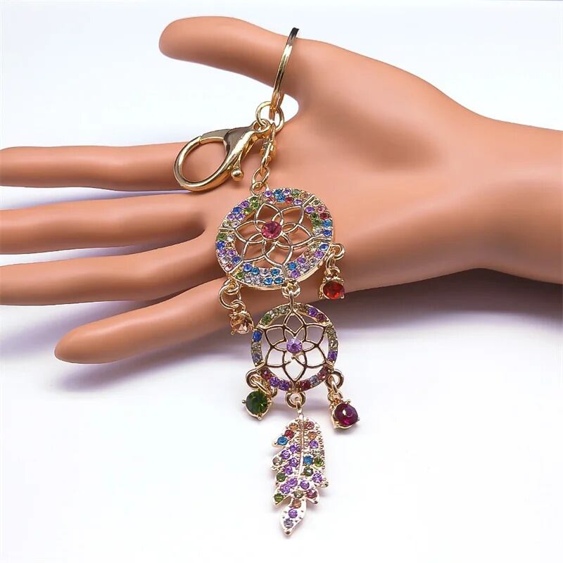 キーホルダー キーチェーン ペンダント ラインストーン ビンテージ チェーン キャッチ 車 鍵 レディース ボヘミア 絶妙 ドリーム キャッチャー