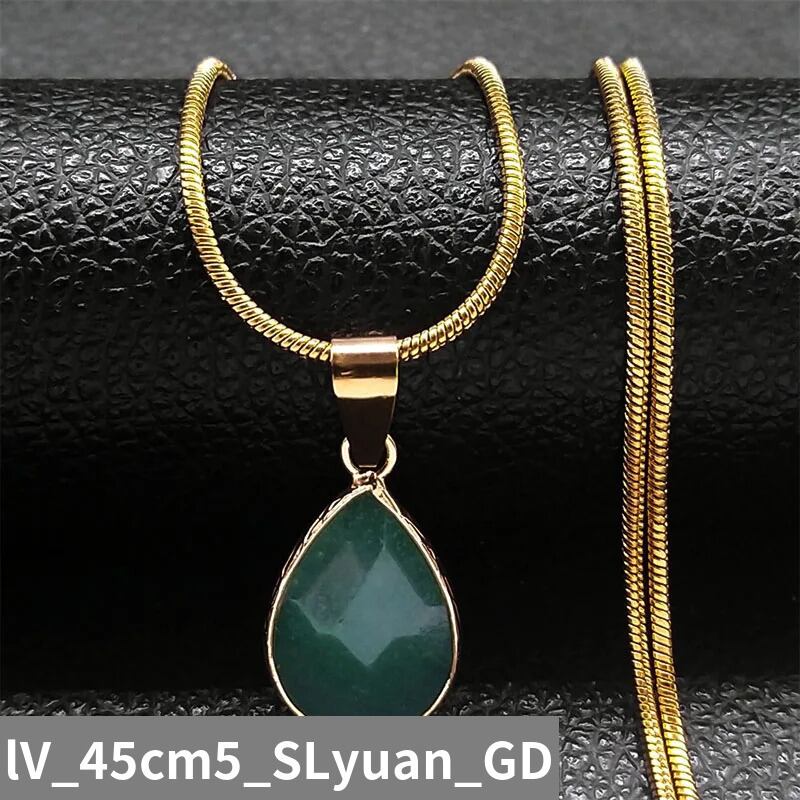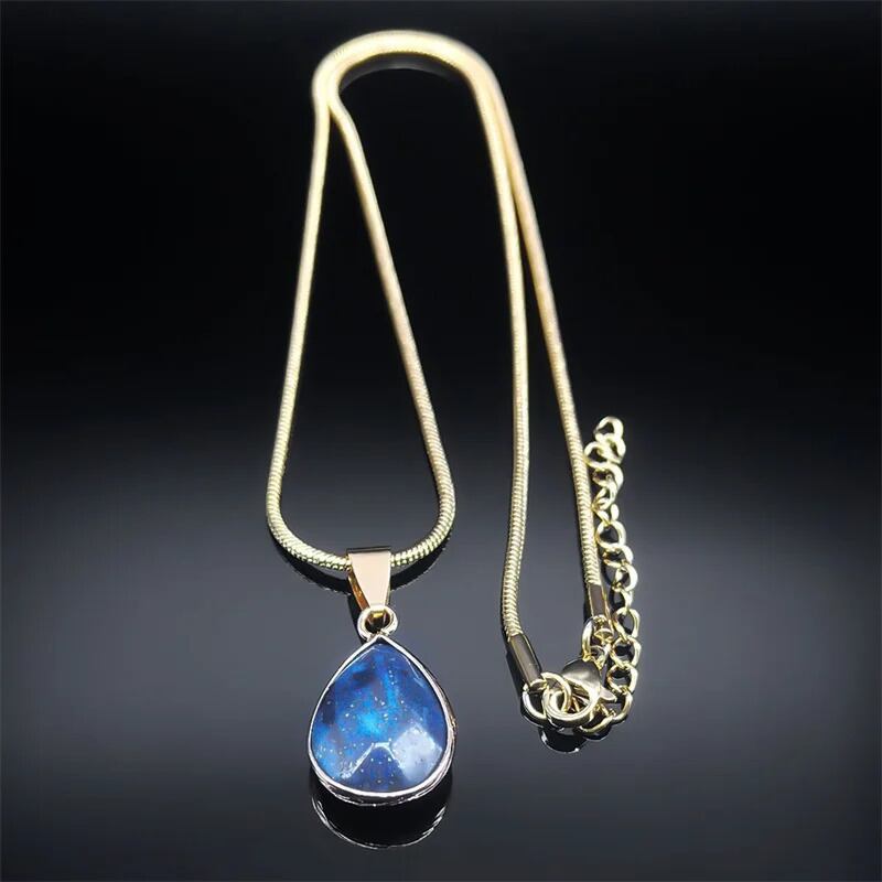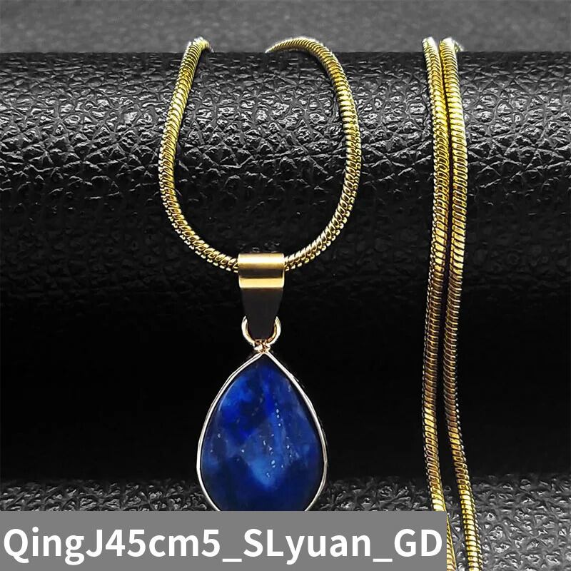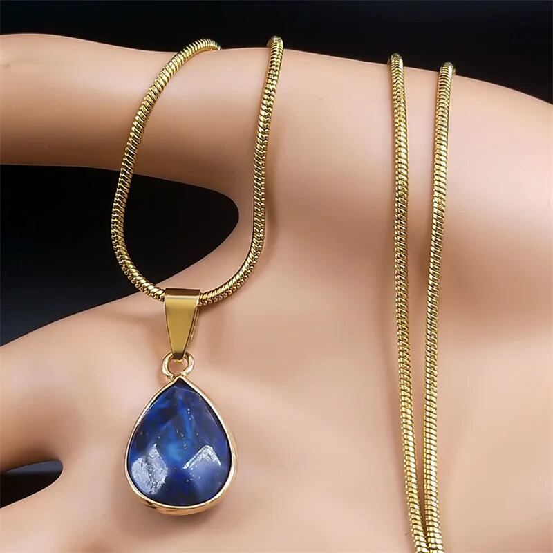水 ドロップ ラピス ラズリ ナチュラル ストーン ペンダント ネックレス レディース ステンレス スチール 蛇 スネイク ヘビ 動物 アニマル チェーン チョーカー ビンテージ ジュエリー