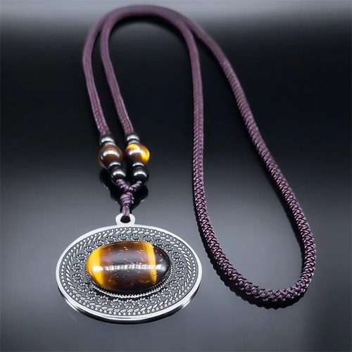 新しい ビンテージ 虎 タイガー 動物 アニマル 目 アイズ ステンレス スチール ペンダント ネックレス ナチュラル ストーン ビーズ 織り ロープ ヒーリング ジュエリー ギフト N3620S