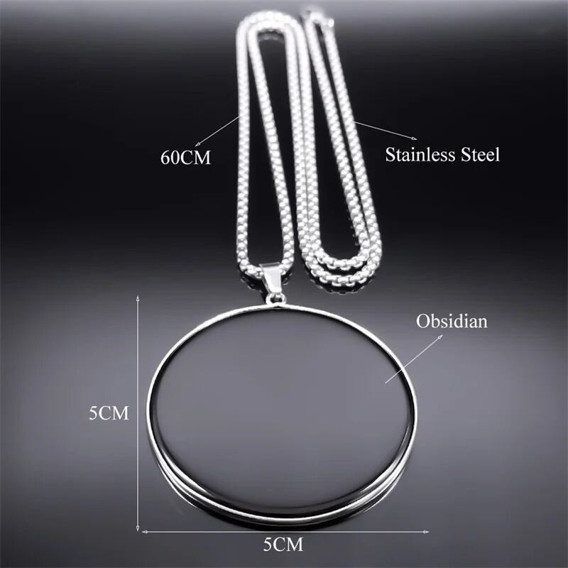 ファッション 大 黒 ブラック 黒曜石 ネックレス ステンレス スチール ナチュラル ストーン ラッキー ペンダント チェーン メンズ ジュエリー コーラー レディース