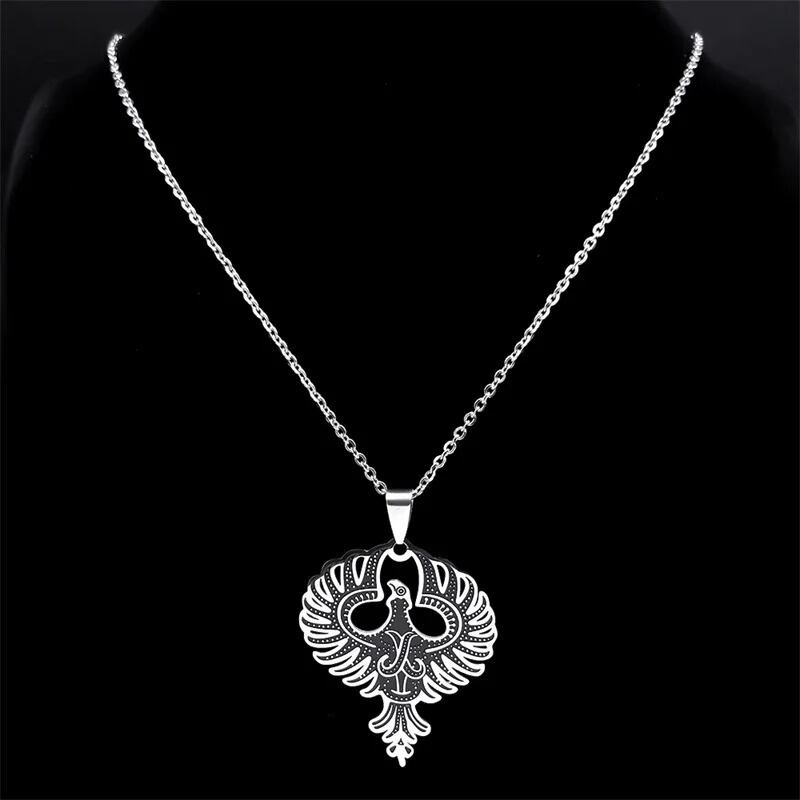 フェニックス 鳥 バード 動物 アニマル ネックレス ステンレス スチール ファイヤーバード 火の鳥 ペンダント レディース メンズ シルバー カラー ジュエリー ギフト チェーン N7574S