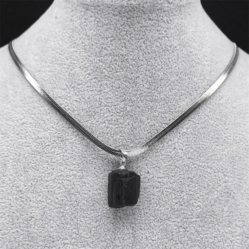 イレギュラー ナチュラル 黒 ブラック トルマリン ペンダント ネックレス レディース メンズ ステンレス スチール 蛇 スネイク ヘビ 動物 アニマル 刃 ブレード チェーン ジュエリー NXXXXS