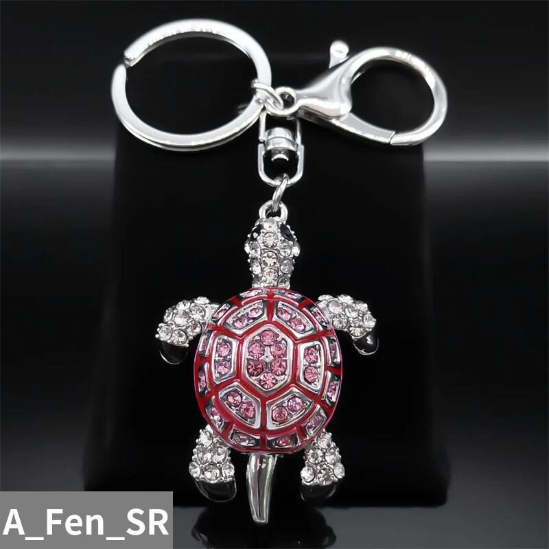 絶妙 カラフル クリスタル カメ タートル 動物 アニマル 鍵 キー リング 指輪 ホルダー レディース メンズ アロイ ラインストーン キーチェーン キーホルダー チャーム ジュエリー ギフト K5205S