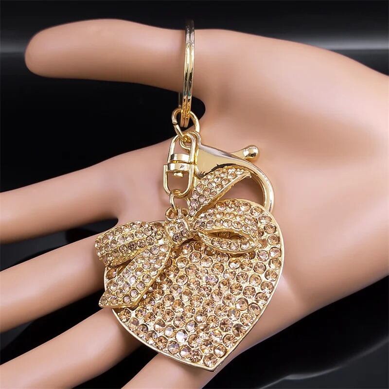 キーホルダー 指輪 リング ラインストーン クリスタル チェーン ハート リボン 鍵 レディース シャイニー ボウノット 贅沢