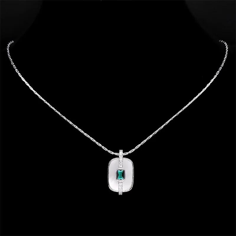 シャイニー 韓国 緑 グリーン クリスタル ナチュラル シェル 貝殻 ネックレス レディース 贅沢 ステンレス スチール 細い ジュエリー ネック NGGS