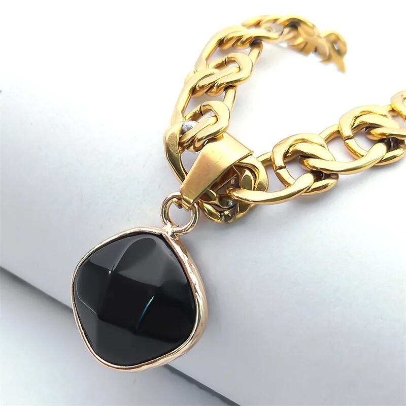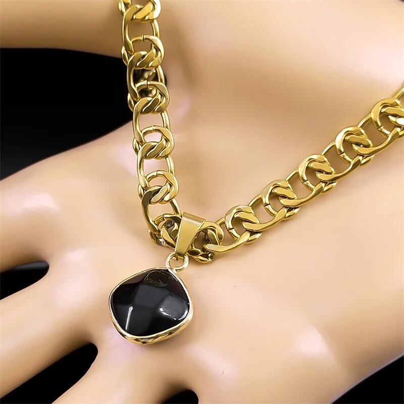 ビンテージ 黒 ブラック 黒曜石 ナチュラル ストーン ネックレス レディース ステンレス スチール BOHO ジュエリー ギフト  ガールフレンド NDD16-5S