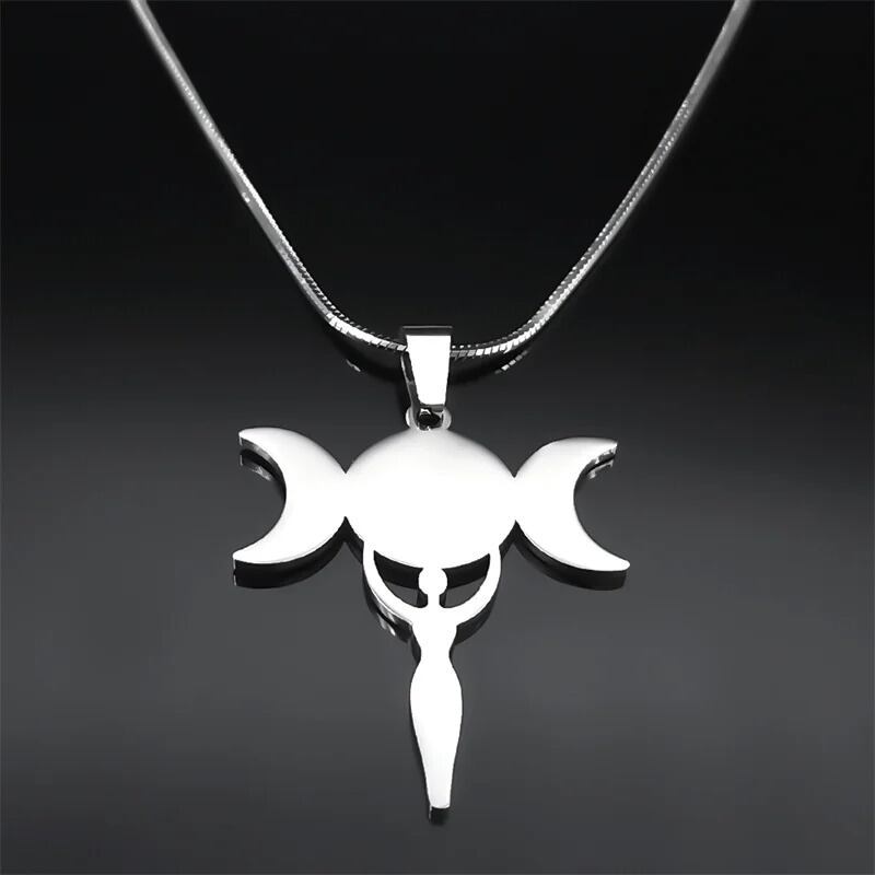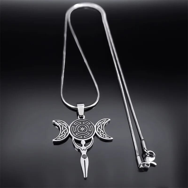 ファッション トリプル 月 ムーン 女神 ヘカテ ネックレス レディース メンズ ステンレス スチール 魔女 ウィッチ 結び目 リボン ウィッカ ネオペイガン ジュエリー N9601S