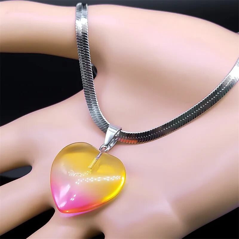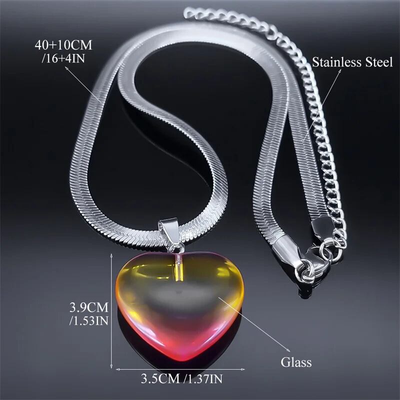 勾配 カラフル ハート 形 シェープ ガラス ペンダント ネックレス レディース メンズ ステンレス 蛇 スネイク ヘビ 動物 アニマル 鎖骨 チェーン チョーカー ジュエリー NXS