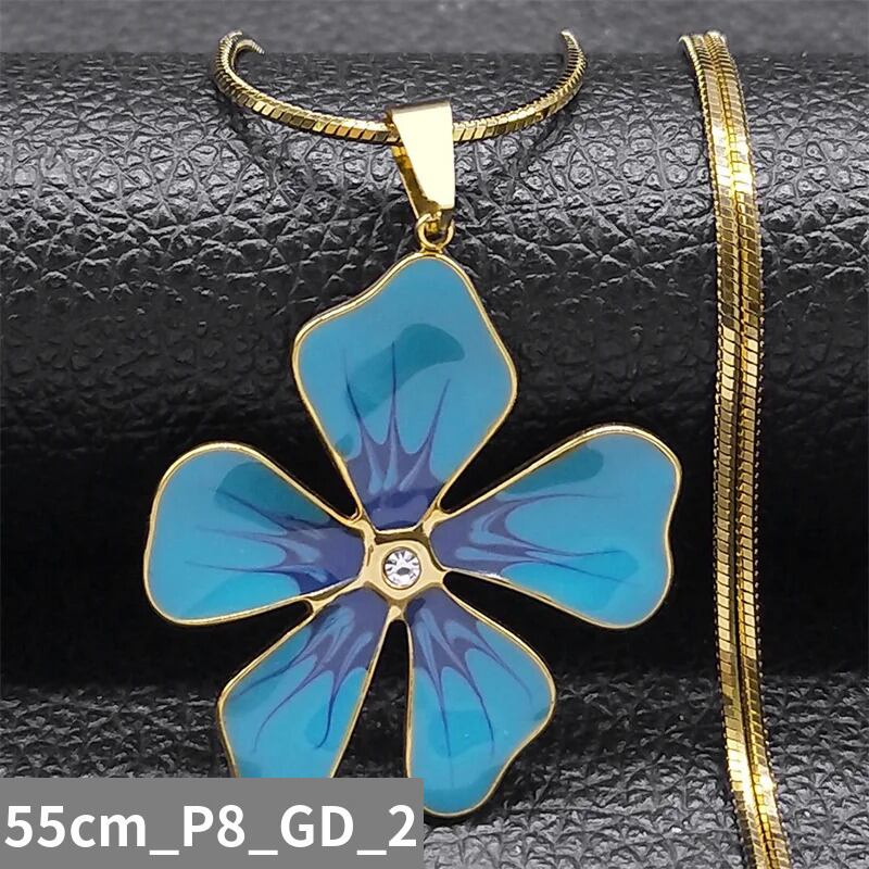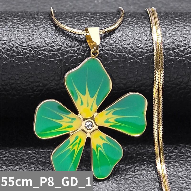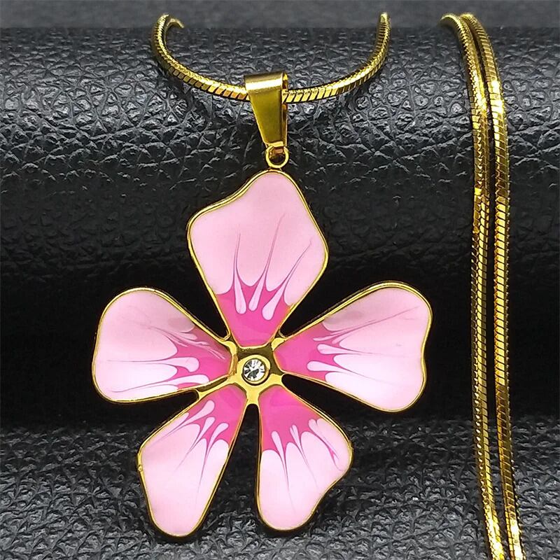 ピンク エナメル 花 フラワー ペンダント ネックレス レディース ステンレス スチール ゴールド カラー プラント ジュエリー パラ N394S