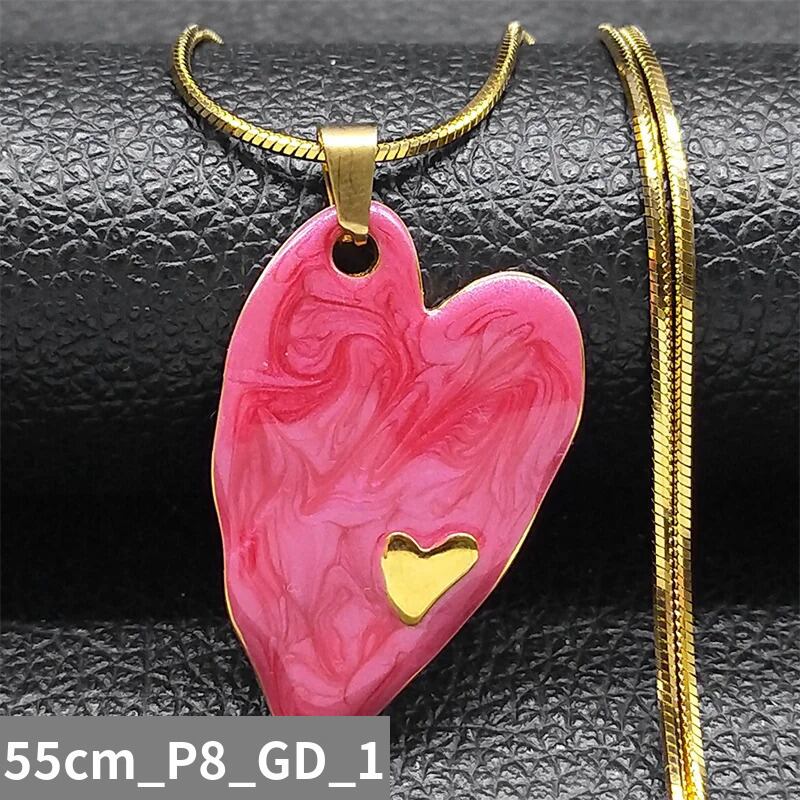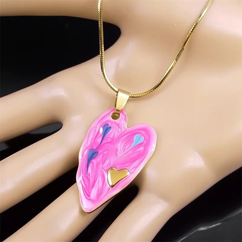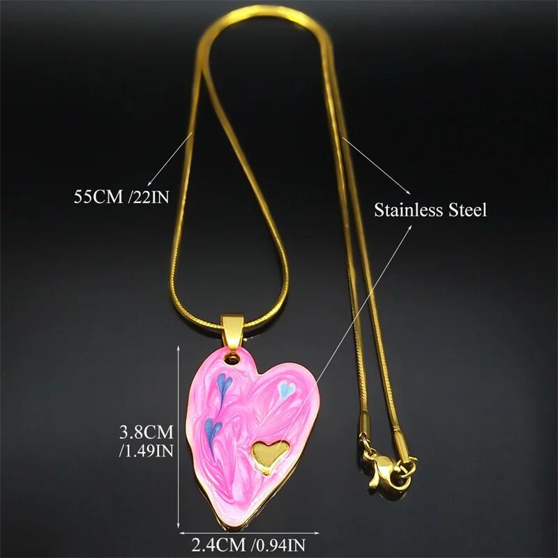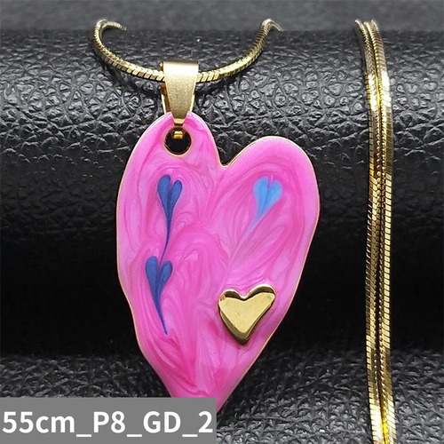 ステンレス スチール ピンク ハート 形 シェープ エナメル ペンダント ネックレス レディース ゴールド カラー チェーン  ジュエリー ギフト N398S