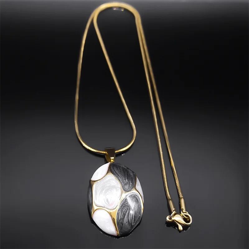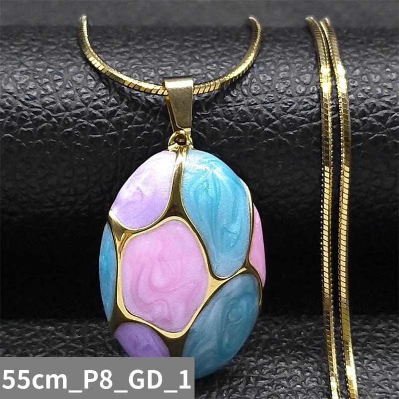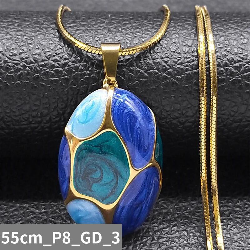 幾何学 対照的 コントラスト カラフル エナメル ペンダント ネックレス レディース ステンレス スチール ゴールド カラー チェーン ジュエリー ギフト N