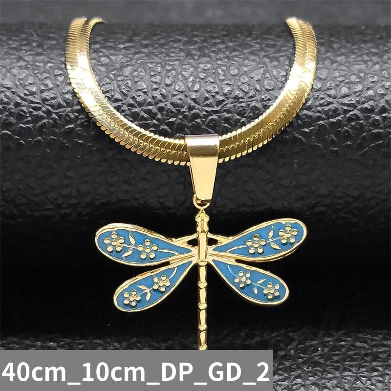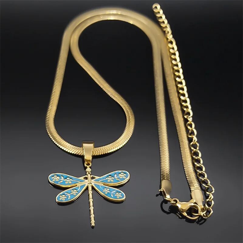 ビンテージ パーソナリティ トンボ ドラゴンフライ 昆虫 インセクト ペンダント ネックレス レディース ステンレス スチール ゴールド カラー 鎖骨 チェーン ジュエリー N402S
