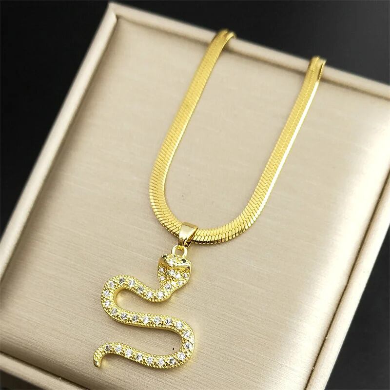 ビンテージ コブラ 動物 アニマル カラフル ジルコン ジルコニア 蛇 スネイク ヘビ ペンダント ネックレス レディース ステンレス スチール ゴールド カラー チョーカー チェーン ジュエリー ギフト