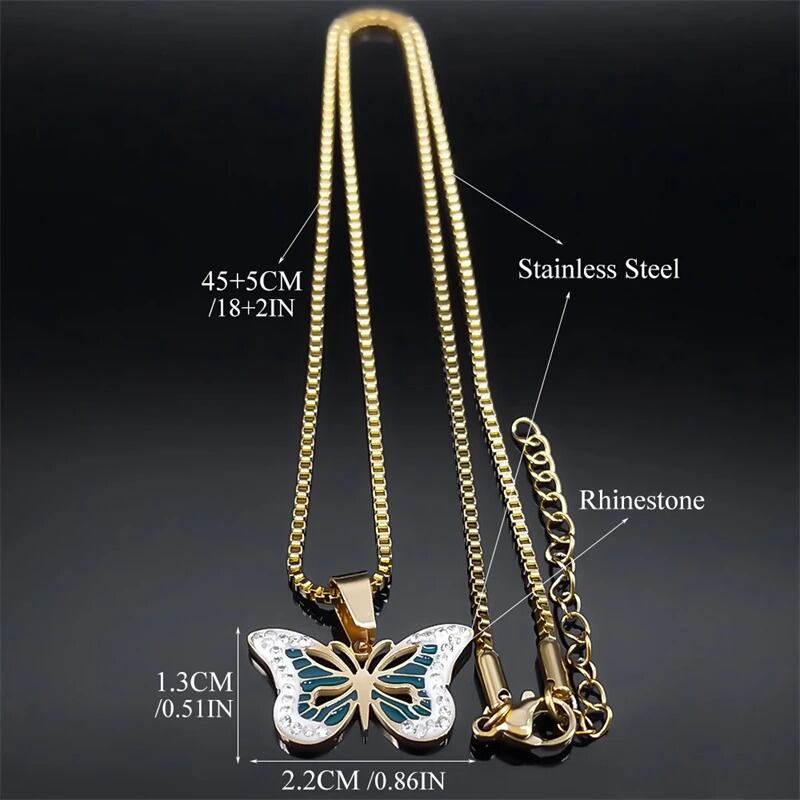 Y2K クリスタル 蝶 バタフライ 昆虫 インセクト ネックレス レディース 韓国 スタイル ステンレス スチール ビンテージ 透かし ペンダント ジュエリー ギフト N61S