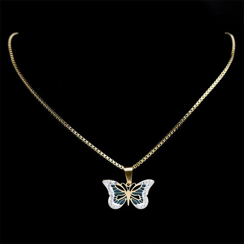 ペンダント ネックレス 蝶 バタフライ クリスタル ステンレス ビンテージ インセクト 韓国 昆虫 レディース Y2K