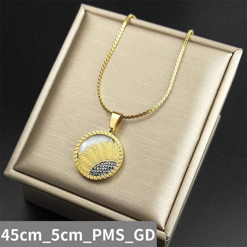 エレガント ひまわり クリスタル ペンダント レディース ネックレス ステンレス スチール シェル 貝殻 ラインストーン ゴールド プレート パーティ ジュエリー N