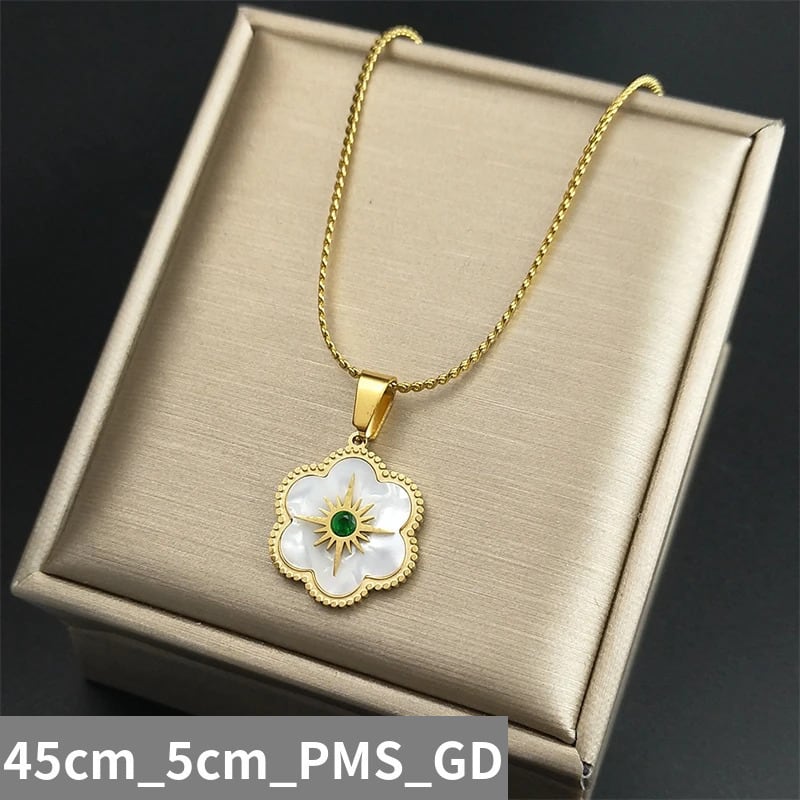 スイート お菓子 スイーツ 花 フラワー チョーカー ネックレス レディース ステンレス スチール シェル 貝殻 ラインストーン ゴールド カラー 5 木の葉 リーフ ジュエリー N32S