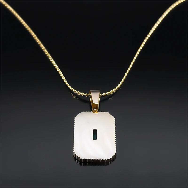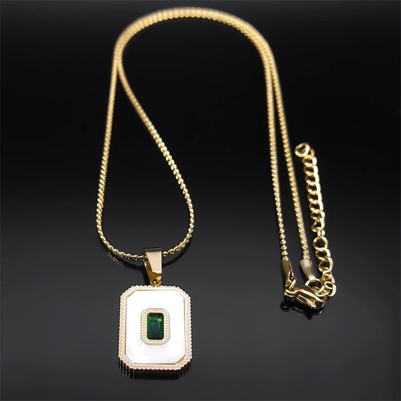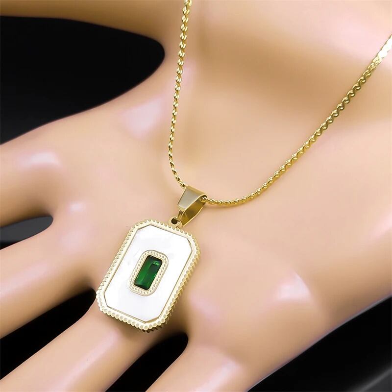 ミニマリスト マザー パール シェル 貝殻 緑 グリーン クリスタル ネックレス レディース ステンレス スチール 鎖骨 チェーン ジュエリー ギフト N