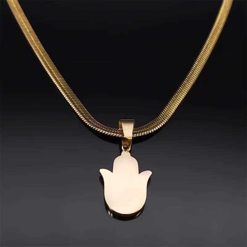 イスラム レディース ハムサ ハンド ファティマ チョーカー ネックレス ステンレス スチール ゴールド カラー 鎖骨 チェーン お守り ジュエリー N41S