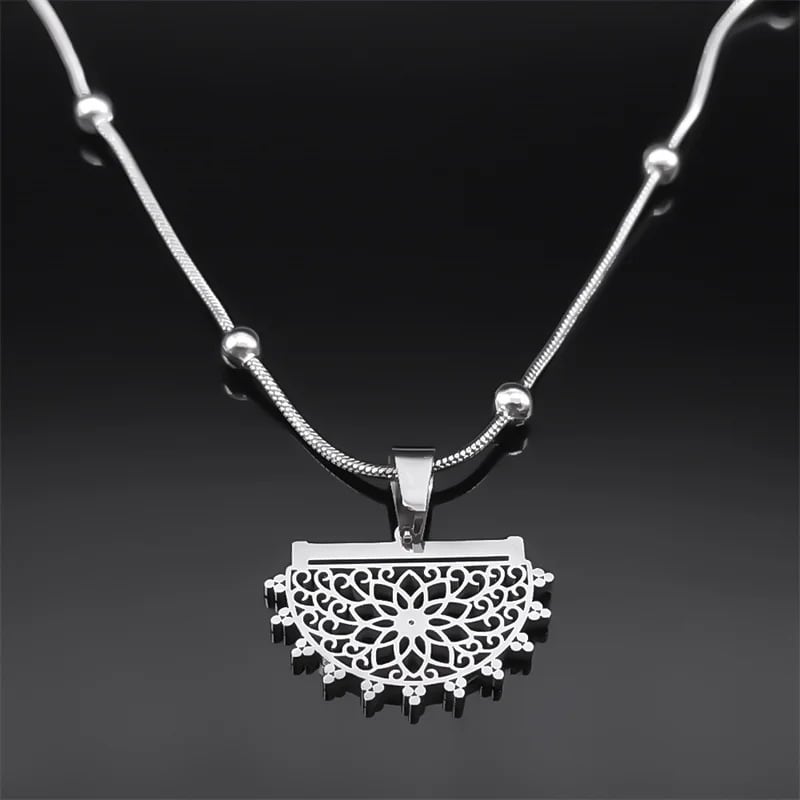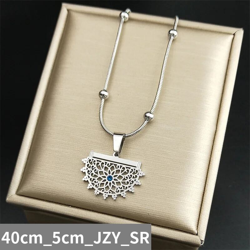 ステンレス スチール 幾何学 レトロ 花 フラワー ペンダント ネックレス ゴールド プレート 透かし BOHO 蛇 スネイク ヘビ 動物 アニマル チェーン チョーカー ジュエリー ギフト N