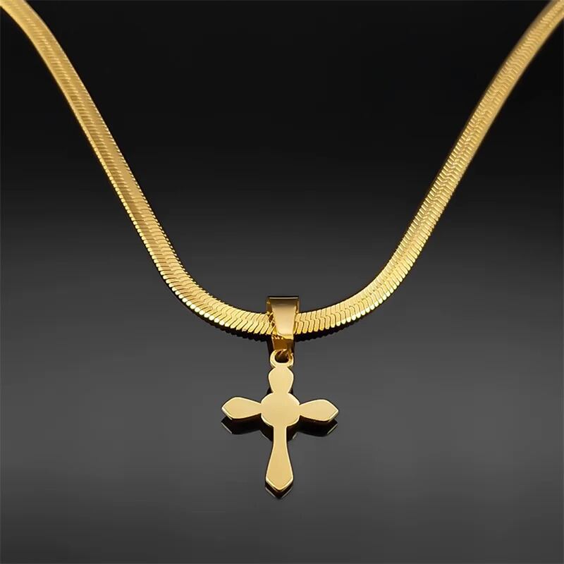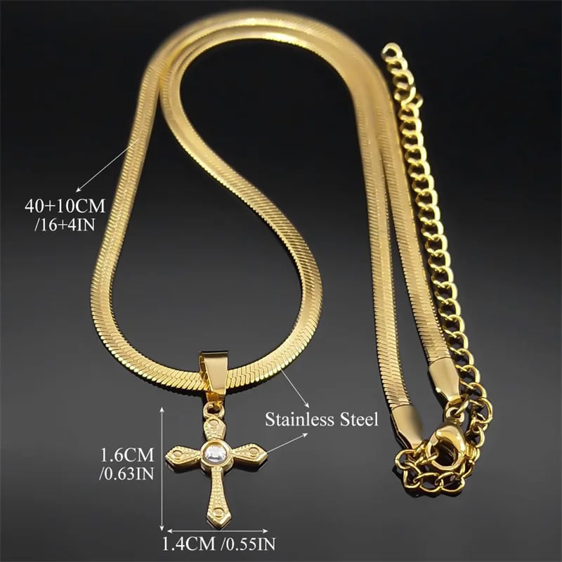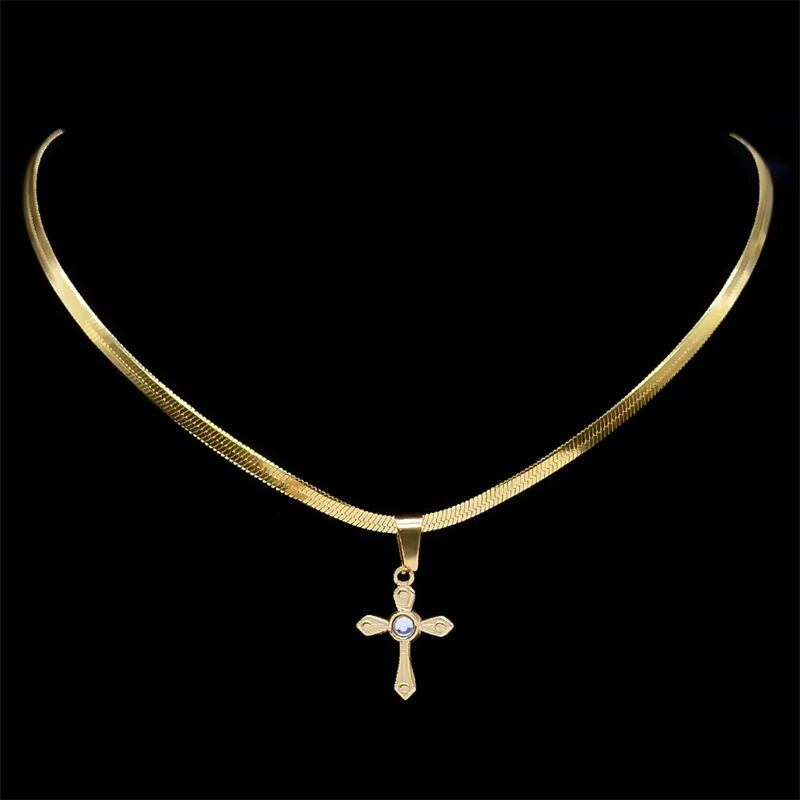 ビンテージ ヒップ ホップ パンク ストーン クロス ペンダント ネックレス チャーム レディース ステンレス スチール ゴールド カラー チョーカー ジュエリー ギフト