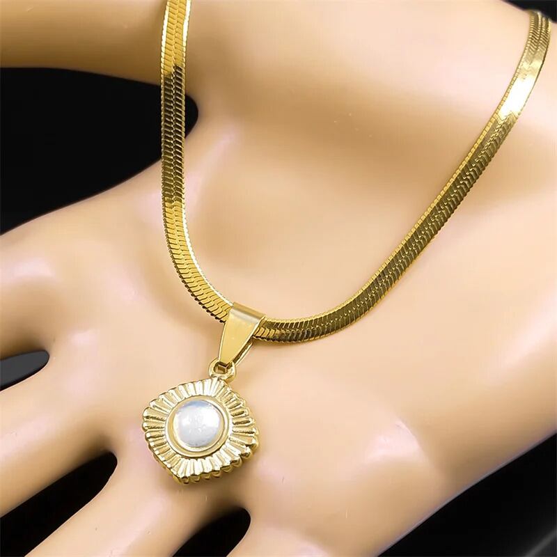 ファッション ストーン オパール 太陽 ネックレス レディース ステンレス スチール ゴールド カラー ラウンド ペンダント 結婚式 ウェディング パーティ ジュエリー ギフト