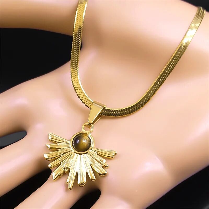 虎 タイガー 動物 アニマル 目 アイズ ストーン ファン ペンダント ネックレス レディース メンズ ステンレス スチール ゴールド カラー ビンテージ チョーカー チェーン ジュエリー パーティ ギフト