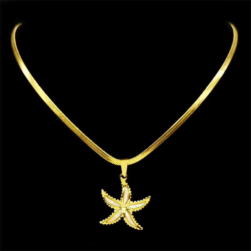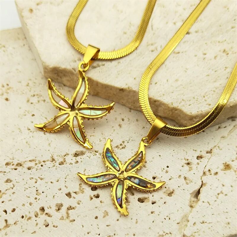 アワビ 動物 アニマル シェル 貝殻 カメ かめ 亀 タートル デビル フィッシュ 魚 スター 星 ペンダント ネックレス レディース ステンレス スチール ゴールド カラー チェーン 巻き貝 ジュエリー ギフト