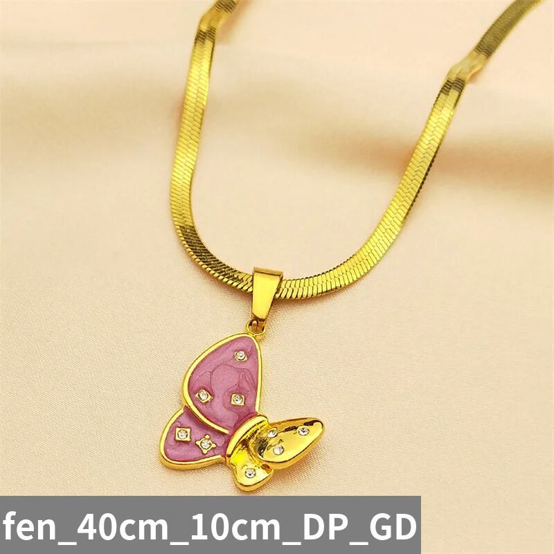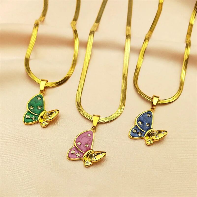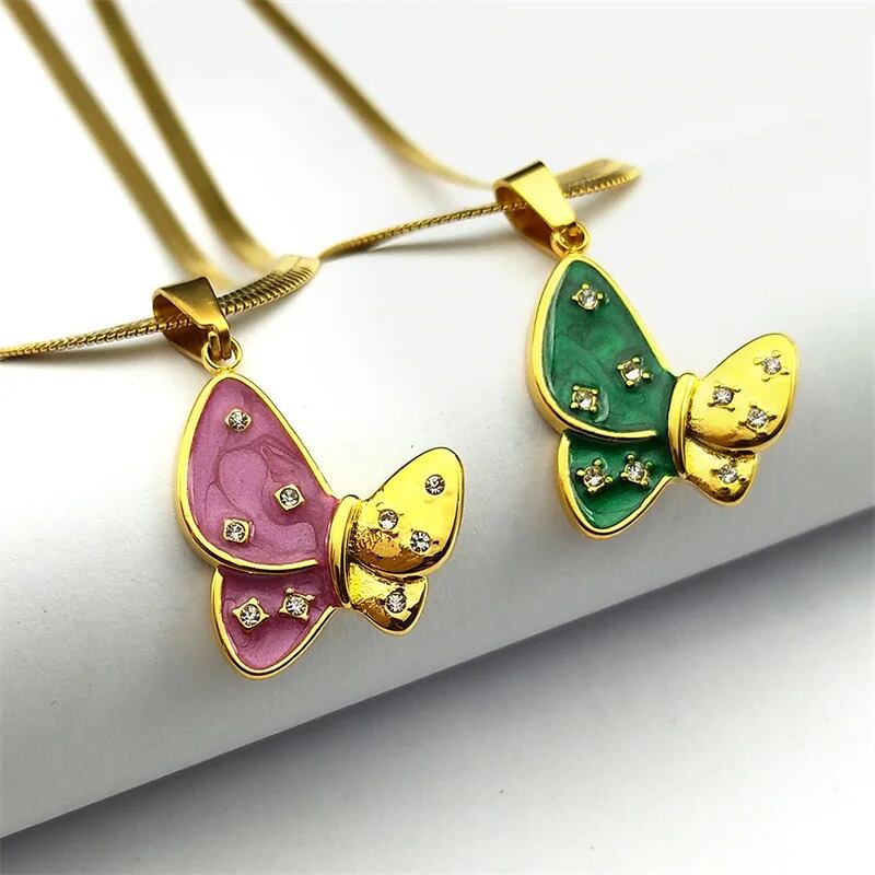 エナメル Y2K スタイル クリスタル 蝶 バタフライ 昆虫 インセクト ペンダント ネックレス チャーム レディース ステンレス スチール ゴールド カラー チェーン 結婚式 ウェディング ガール パーティ ギフト