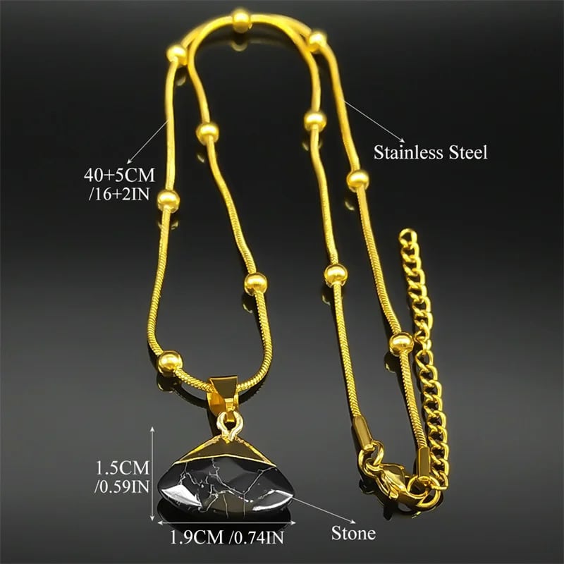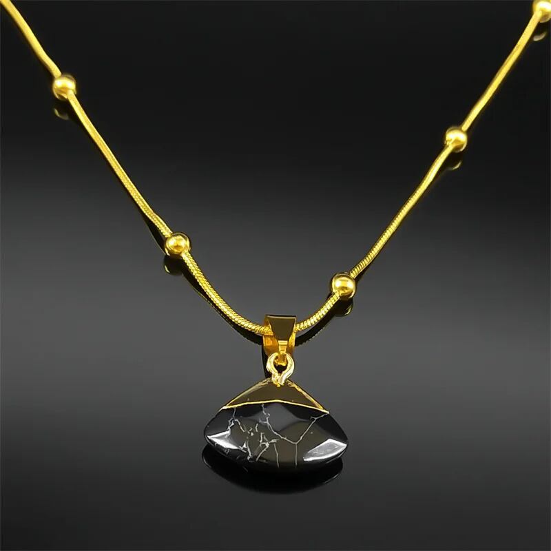 エレガント 黒 ブラック オリジナル ストーン ファン 形 シェープ ペンダント ネックレス レディース ステンレス スチール ゴールド カラー チョーカー ビーズ チェーン 結婚式 ウェディング パーティ ギフト