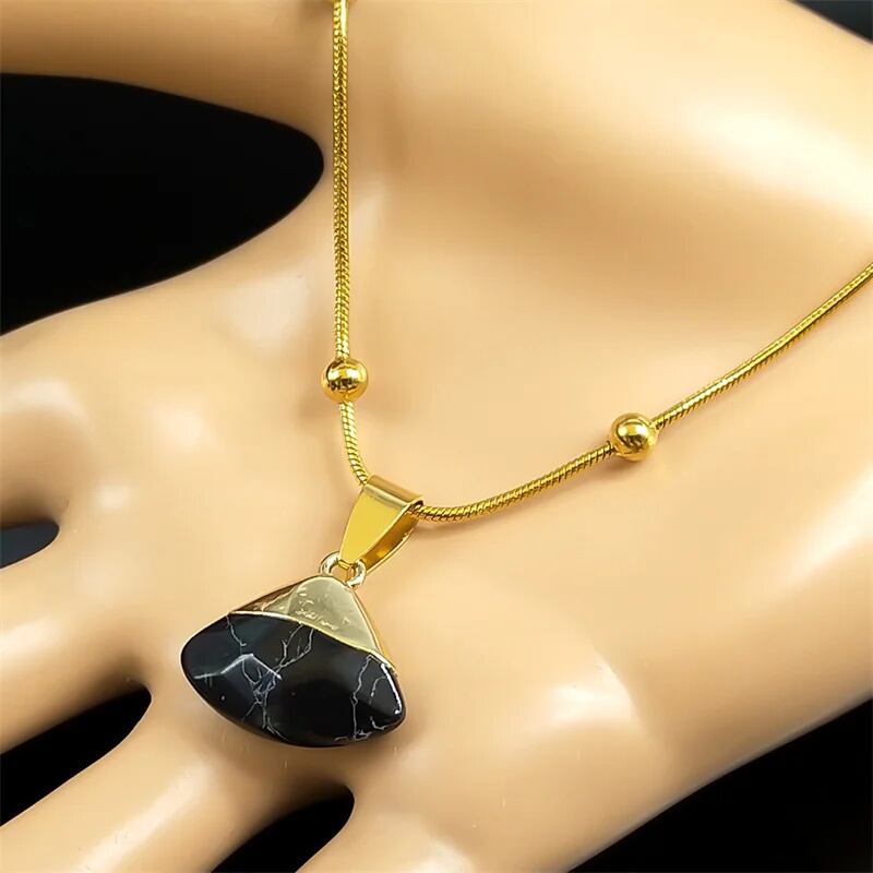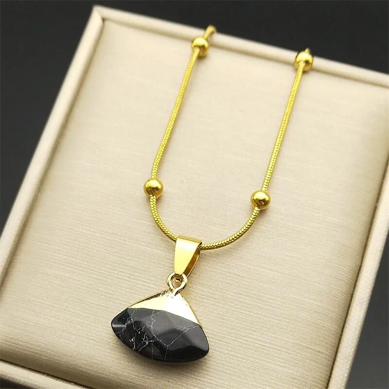 形状ネックレス:オリジナルストーン扇形ペンダントネックレス