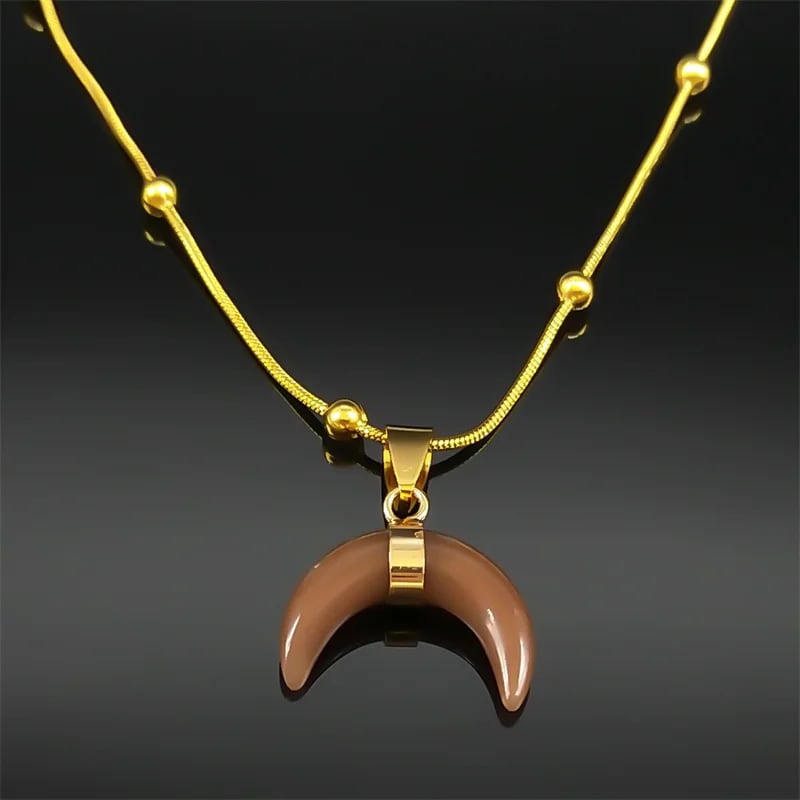 ファッション ストーン 三日月 月 ムーン ペンダント ネックレス レディース メンズ ステンレス スチール ゴールド カラー チャーム チョーカー ビーズ チェーン ジュエリー ギフト