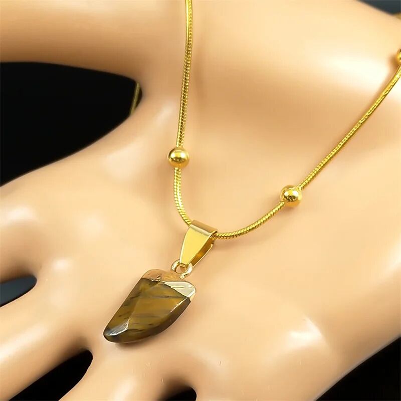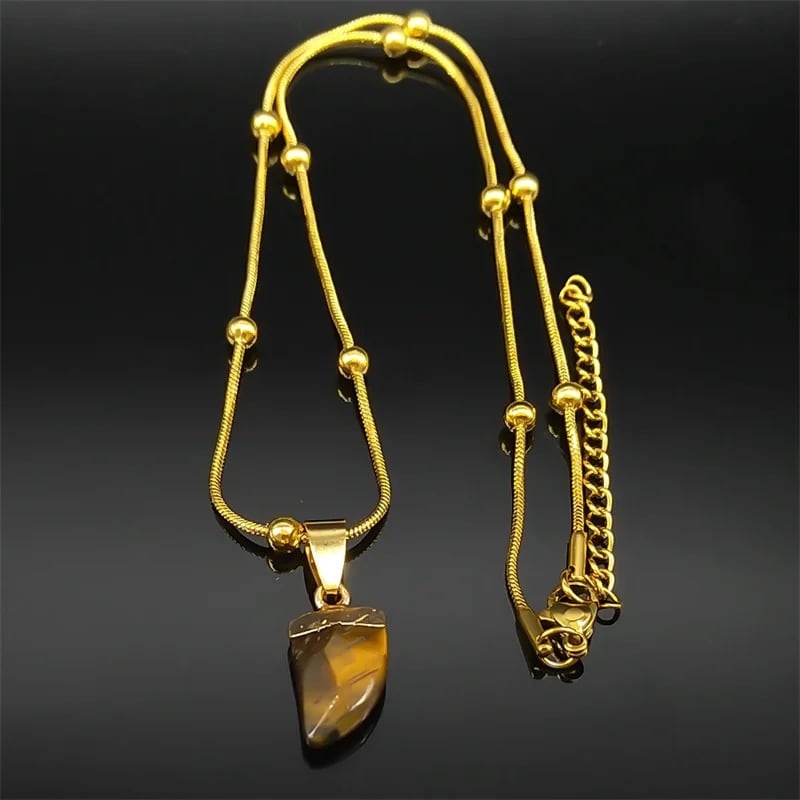 虎 タイガー 動物 アニマル 目 アイズ ストーン イレギュラー ナイフ ペンダント ネックレス レディース メンズ ステンレス スチール ゴールド カラー お守り チョーカー チェーン ジュエリー ギフト