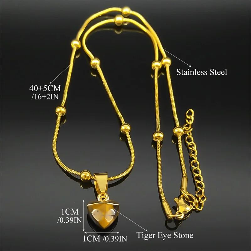 茶 ブラウン カラー 虎 タイガー 動物 アニマル 目 アイズ ストーン ハート ペンダント ネックレス レディース メンズ ステンレス スチール ゴールド チェーン シンプル 桃 ピーチ 植物 プラント 果物 フルーツ チョーカー ジュエリー ギフト