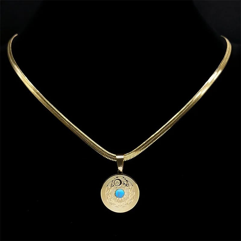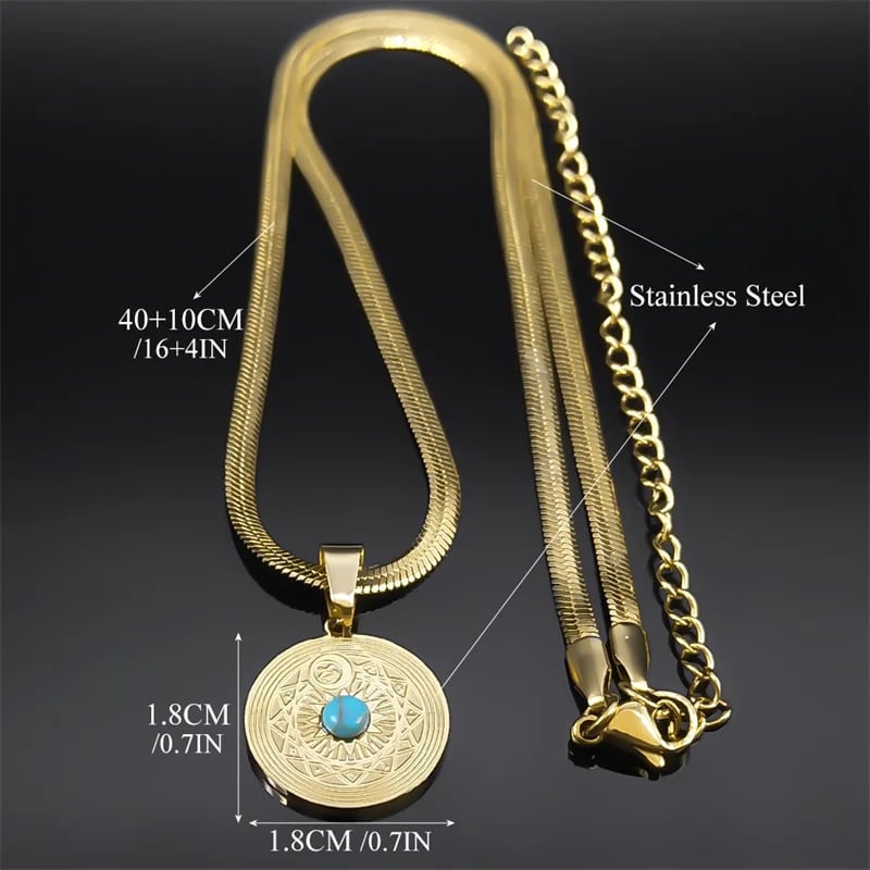 ひまわり ターコイズ ペンダント ネックレス レディース メンズ ステンレス スチール ゴールド カラー 星座 ルーン ビンテージ お守り ジュエリー パーティ ギフト
