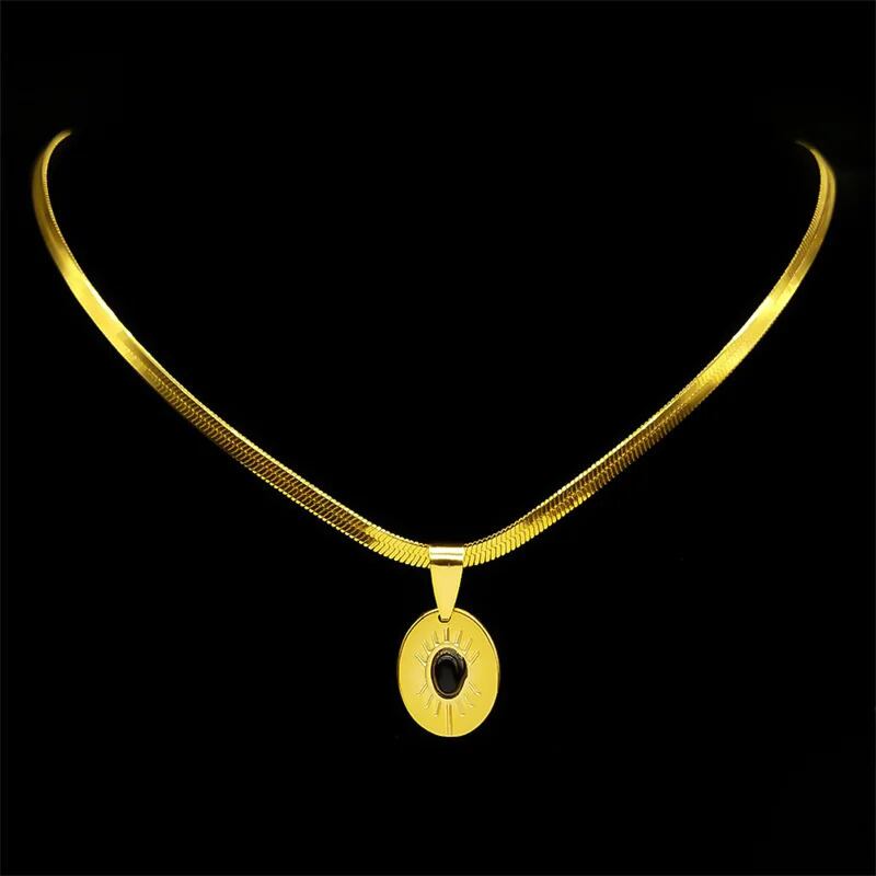 ビンテージ 太陽 黒曜石 ストーン チョーカー ペンダント ネックレス レディース ステンレス スチール ゴールド カラー オバール メダル BOHO 黒 ブラック ジュエリー ギフト