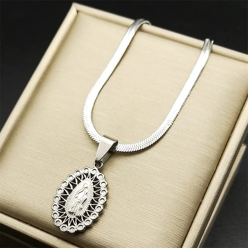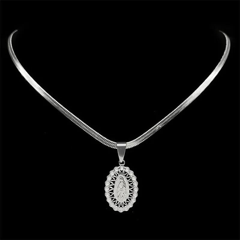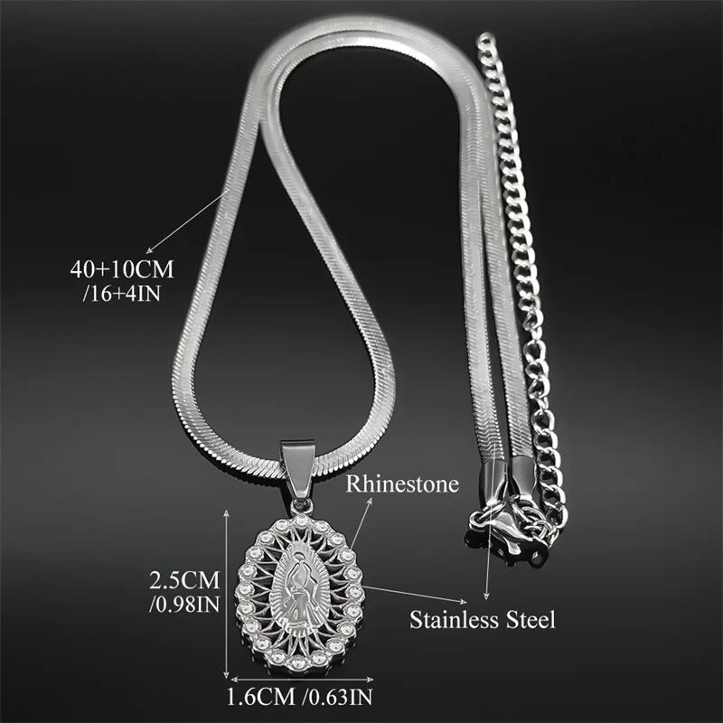 ペンダント ネックレス ラインストーン ステンレス レディース カトリック バージン メアリー スチール 宗教的 信仰 フェイス ゴッド ヒップ