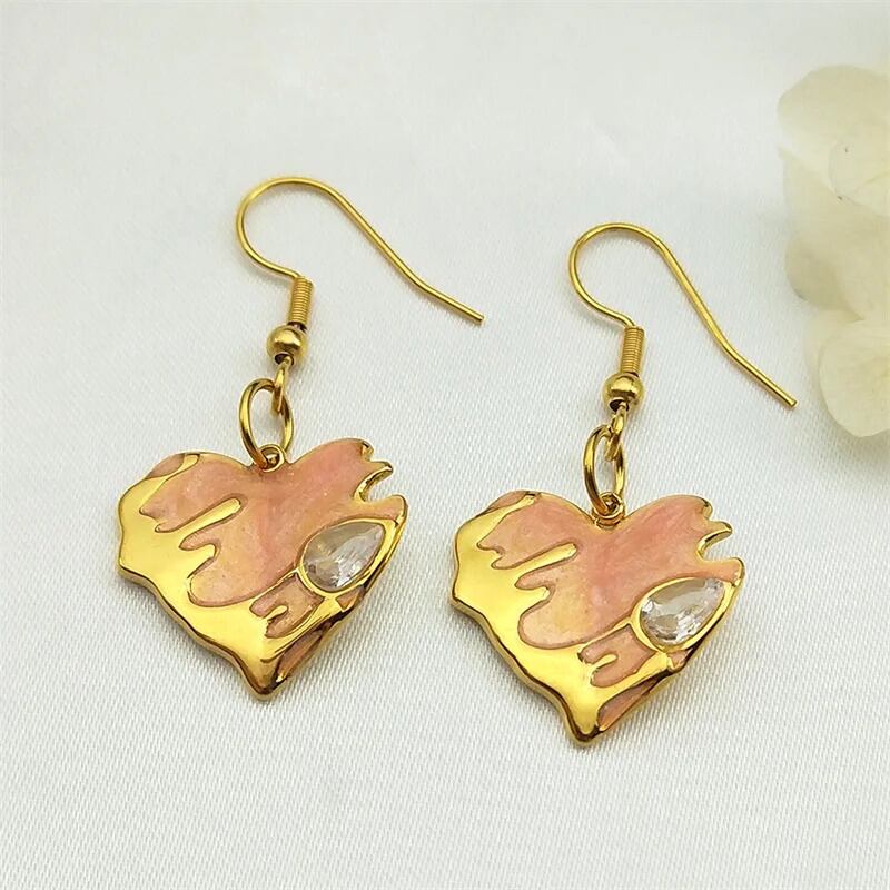 ジルコン ジルコニア カラフル エナメル 溶岩 桃 ピーチ 植物 プラント 果物 フルーツ ハート イレギュラー ダングル 揺れる ピアス レディース ステンレス スチール カップル ジュエリー パーティ ギフト