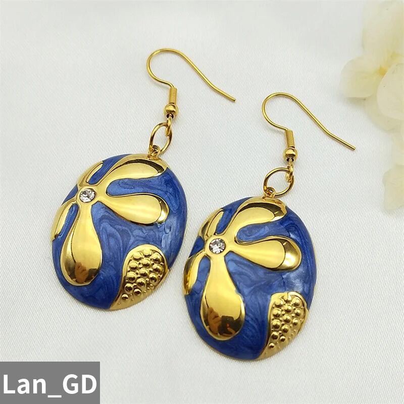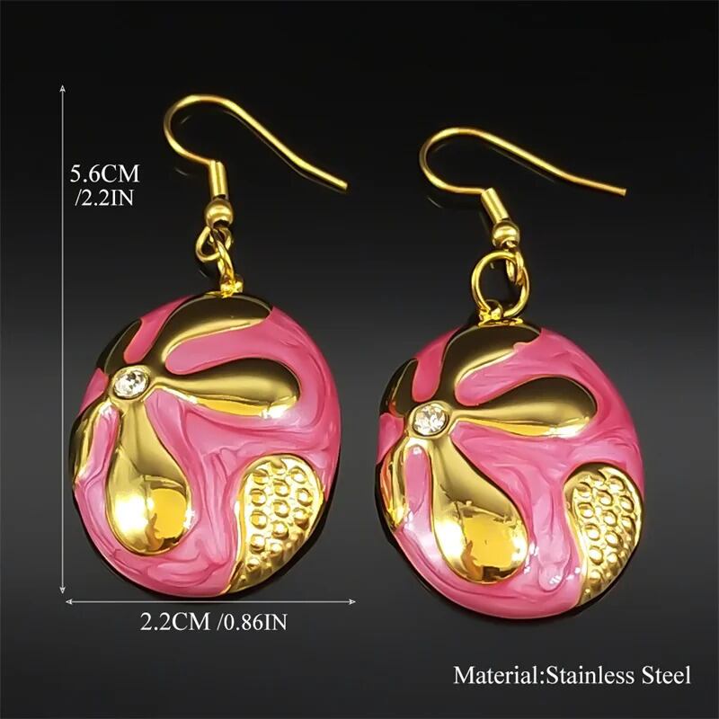 中世 ラインストーン エナメル 花 フラワー オバール ドロップ ピアス レディース ステンレス スチール ゴールド カラー エレガント フープ ジュエリー ギフト