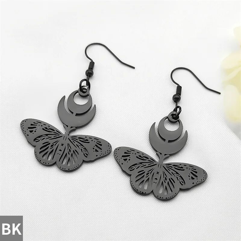 ファイン ファッション:魔女の三日月蝶ドロップ ピアス