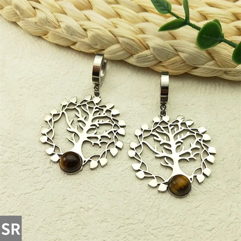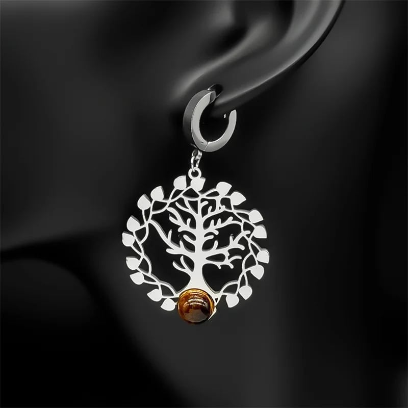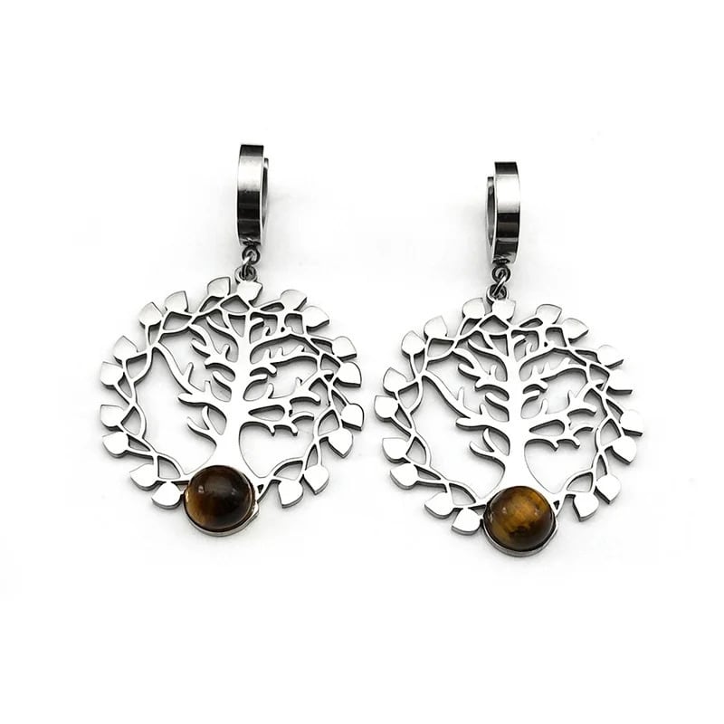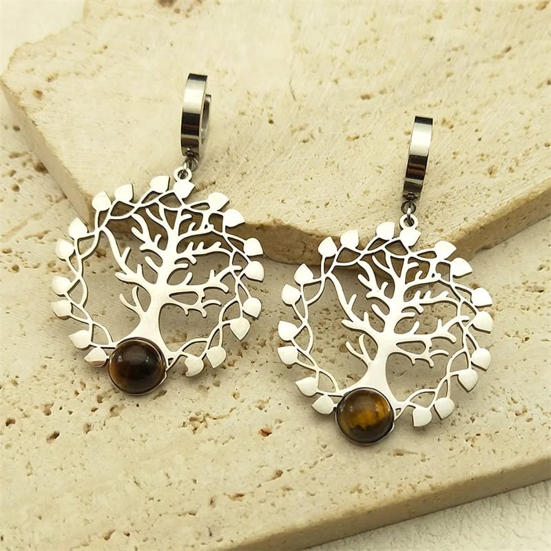 ファイン ファッション:タイガーアイストーンヴィンテージツリーオブライフドロップピアス