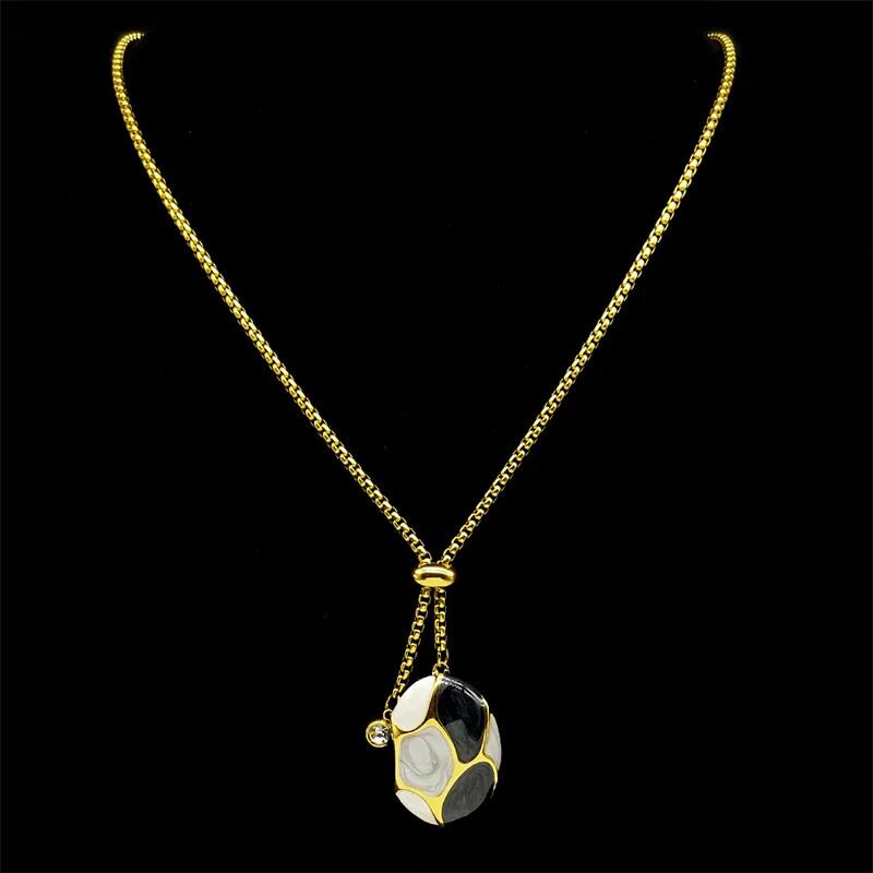 オバール 対照的 コントラスト カラフル エナメル ジルコン ジルコニア ペンダント ネックレス レディース ステンレス スチール ゴールド カラー チェーン ジュエリー ギフト