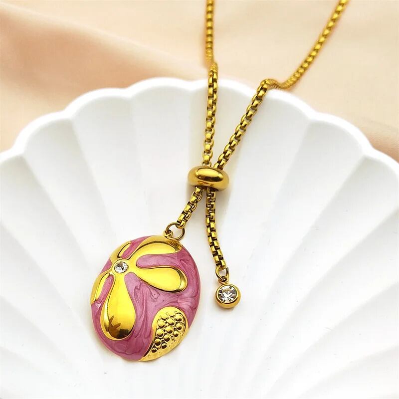 Y2K ラインストーン 花 フラワー オバール ペンダント ネックレス レディース ステンレス スチール ゴールド カラー チョーカー チェーン ジュエリー