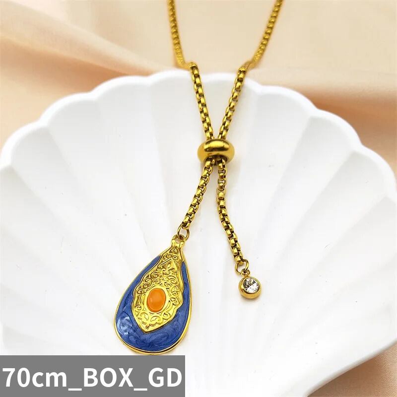 ボヘミアン スタイル エナメル 中世 水 ドロップ ペンダント ネックレス レディース ステンレス スチール ナチュラル ストーン ジュエリー