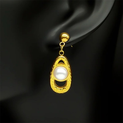 イミテーション パール 水 ドロップ 形 シェープ スタッド ピアス レディース ゴールド カラー ステンレス スチール トレンド かわいい 耳 イヤー ジュエリー